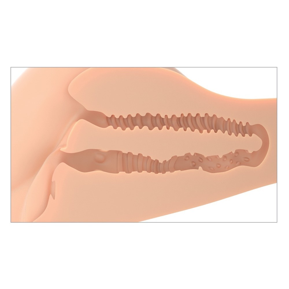 Se puede utilizar en varias posiciones, como el misionero, el perrito, la vaquera, entre otras, y permite la penetración por ambos extremos. Los dos canales de placer, estrechos pero flexibles, presentan en su interior texturas elaboradas y variadas, diseñadas para proporcionar masajes intensos y profundamente estimulantes.