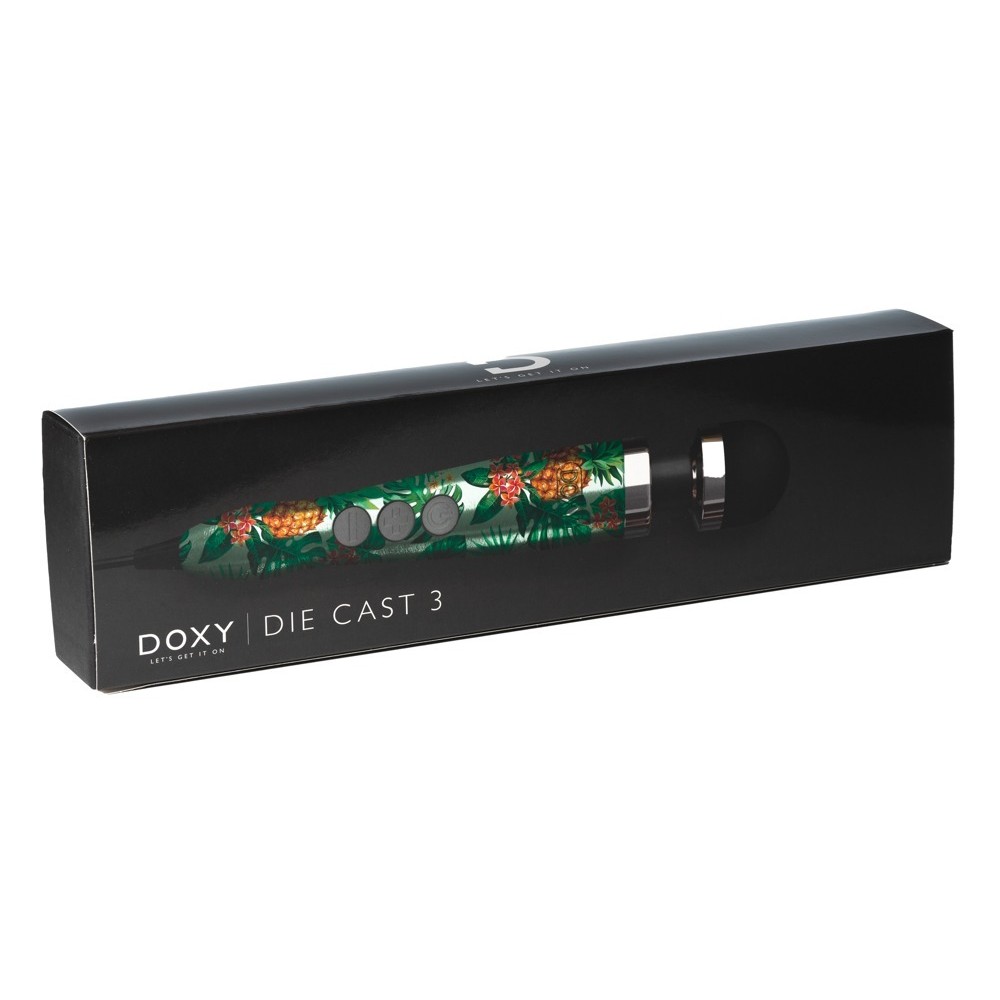 La varita de masaje Die Cast 3 de Doxy, alimentada por corriente eléctrica, ofrece potentes vibraciones de varias velocidades, así como un modo de pulsación creciente con diferentes niveles de intensidad.