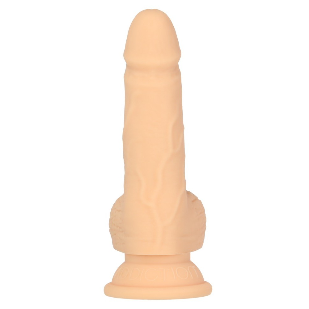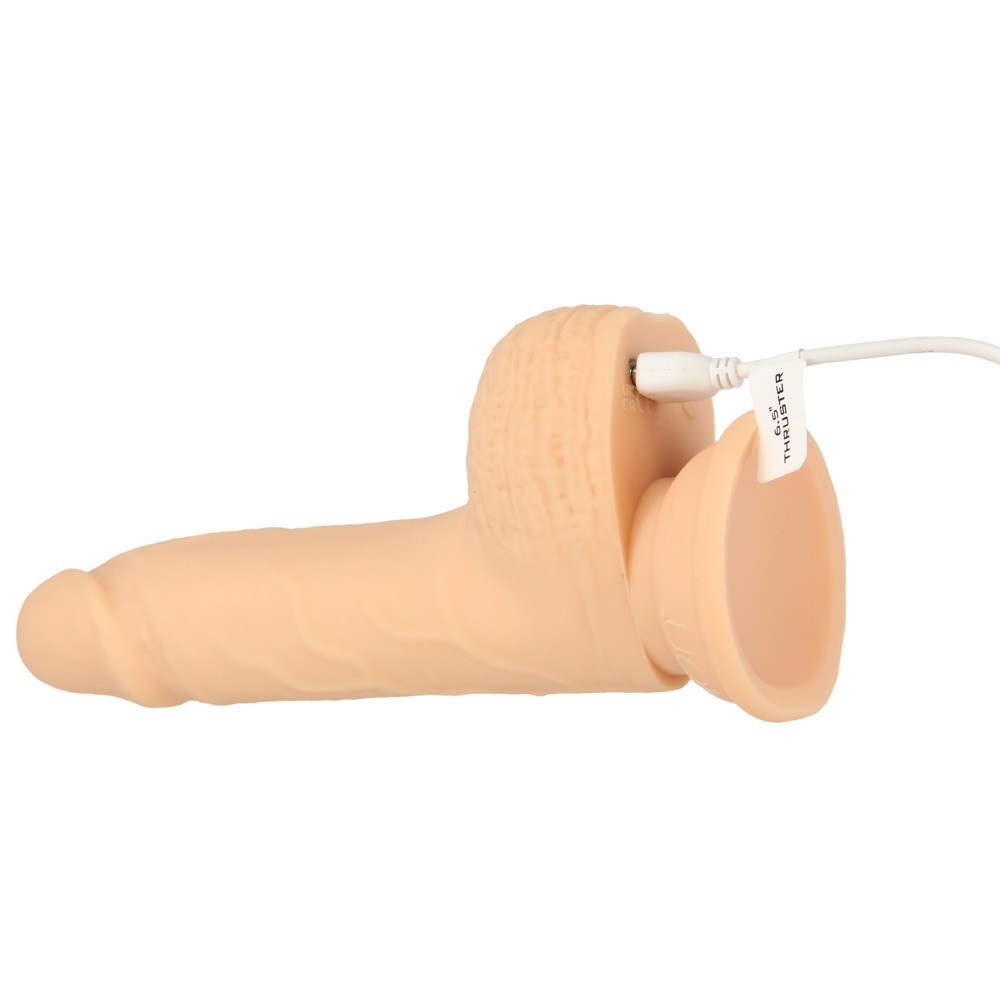 El vibrador flexible de 6,5" Thrusting Dong RC de Naked Addiction presenta un diseño realista, con venas sutiles y glande pronunciado. Cuenta con una ventosa resistente debajo de los testículos que se adhiere firmemente a superficies lisas, lo que permite un uso sin manos.