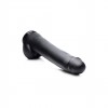 Dildo realista con ventosa para penetración sin manos y material compatible con lubricantes a base de agua o silicona.