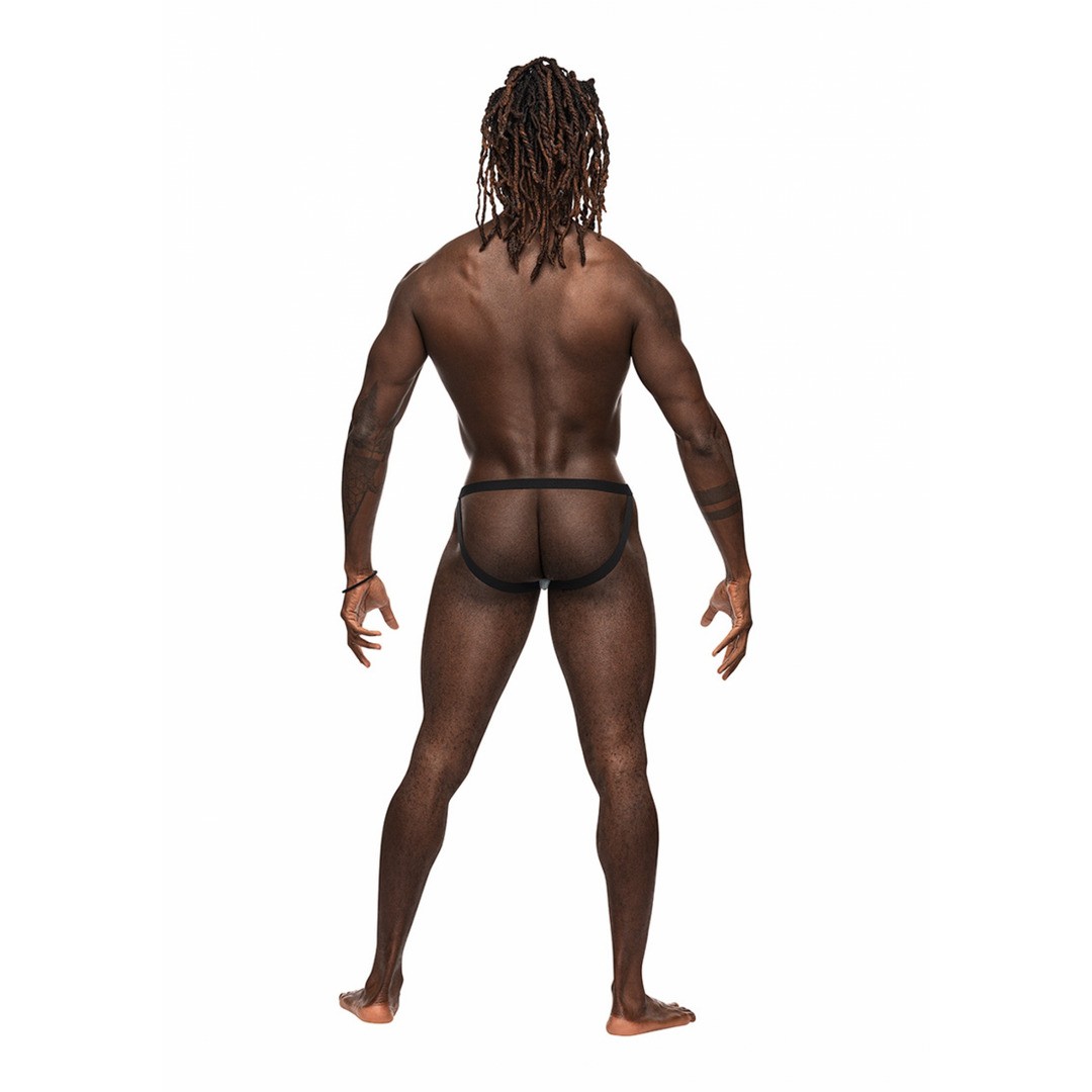 De la colección Magnificence de Male Power, este modelo incluye un jockstrap con una ventana recortada en la cintura, ojales metálicos decorativos y una cintura elástica de felpa fina y fija. Cuenta con bandas elásticas de felpa en las piernas que realzan y sostienen los glúteos. Proporciona un ajuste cómodo, está fabricado con materiales de alta calidad y realza los contornos del cuerpo.