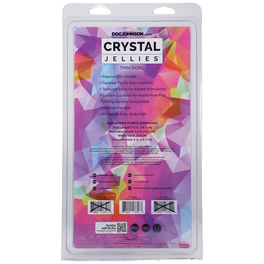 El ancho moderado y la punta fina y cónica del Crystal Jellies 7-Inch Thin Dong están diseñados para una fácil introducción y un placer óptimo.