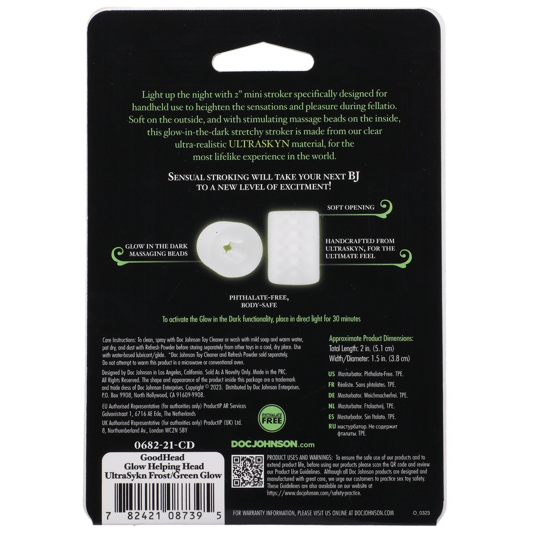 Suaves por fuera y con estimulantes bolas de masaje en el interior, estos masturbadores elásticos que brillan en la oscuridad están fabricados con nuestro material transparente ULTRASKYN ultrarrealista, para ofrecer la experiencia más realista del mundo.