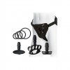 Conjunto Vac-U-Lock para usuarios experimentados, con arnés ajustable, tres dildos ULTRASKYN realistas (26,6 cm, 30 cm y 39,4 cm) y productos de mantenimiento para una experiencia intensa y auténtica.