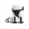 Conjunto de lujo Vac-U-Lock con arnés ajustable, dildos de silicona Platinum y artículos de mantenimiento para una experiencia strap-on completa y versátil.