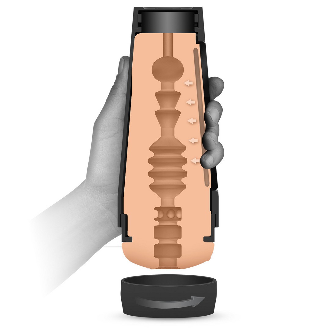 Siempre a tu alcance. La línea de masturbadores rígidos Main Squeeze de Doc Johnson, con moldes de nuestras estrellas porno más populares, está diseñada para poner el poder en tus manos, con un mango apretable que te permite variar la intensidad de cada movimiento y una tapa de succión ajustable.