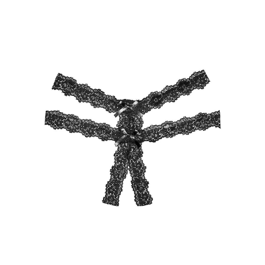 Las intrincadas flores de encaje hacen que este tanga sin entrepierna de doble capa sea divino.