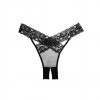 Delicada braguita transparente sin entrepierna con bandas entrecruzadas de encaje de pestañas delante y detrás, acentuadas con deliciosos recortes pequeños.