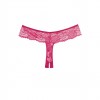 Un suntuoso encaje envuelve tus caderas en este tanga de ensueño sin entrepierna.