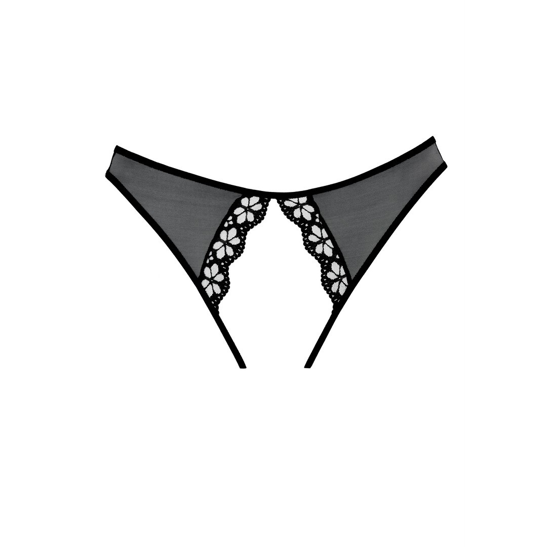 Una mezcla de malla transparente y encaje de flores con adornos picot, hace que este panty con recortes peekaboo en la parte delantera y trasera, deliciosamente travieso.