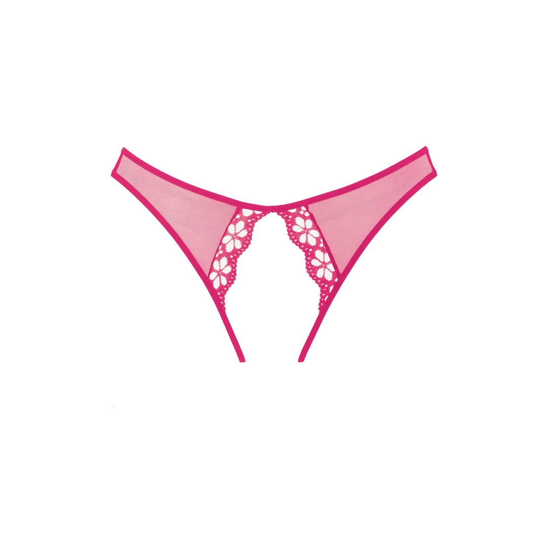 Una mezcla de malla transparente y encaje de flores con adornos picot, hace que este panty con recortes peekaboo en la parte delantera y trasera, deliciosamente travieso.