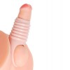 Funda gruesa para el pene con protuberancias texturizadas y correa para los testículos, para un aumento intenso de la circunferencia.