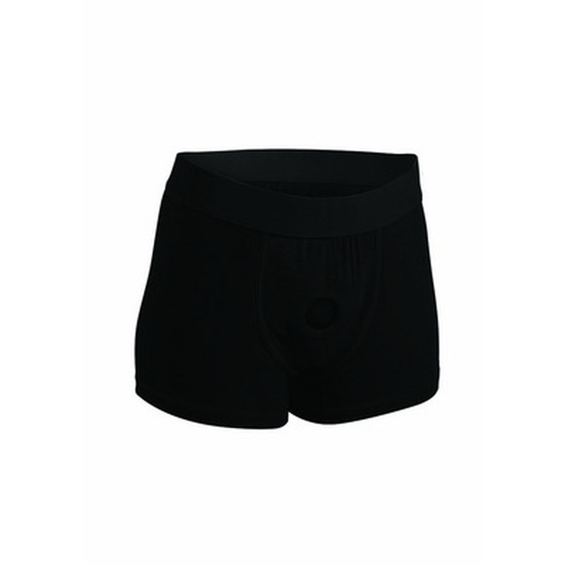 Arnés tipo pantalón corto con anillo interno, de algodón y spandex, cómodo, lavable y listo para el placer inmediato.