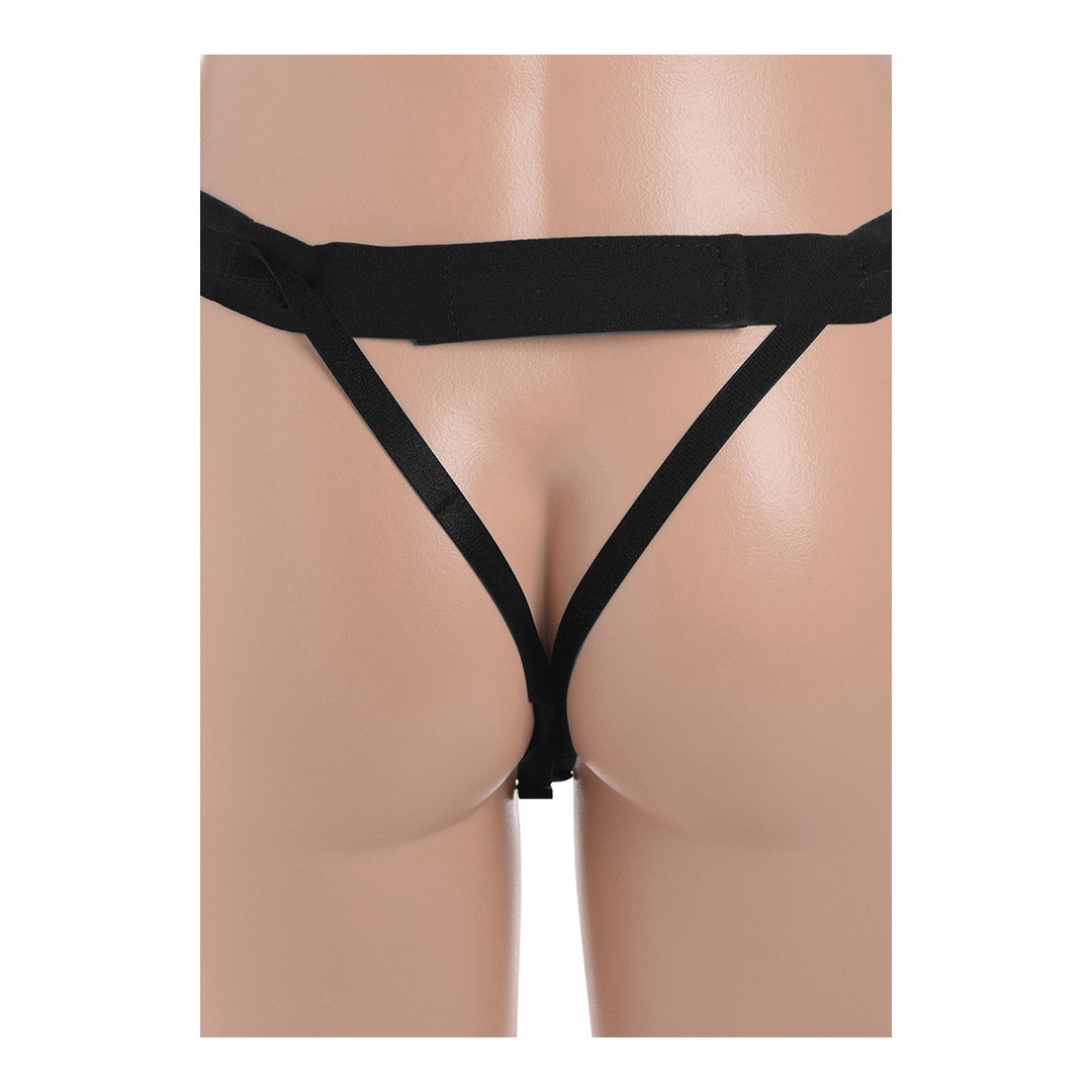 El consolador hueco se adapta cómodamente al pene, ofreciéndole el aumento de circunferencia y longitud que busca. La abertura de la correa para los testículos se adapta y envuelve el escroto, proporcionando un ajuste más seguro y añadiendo una sensación extra de restricción para una mayor sensibilidad.