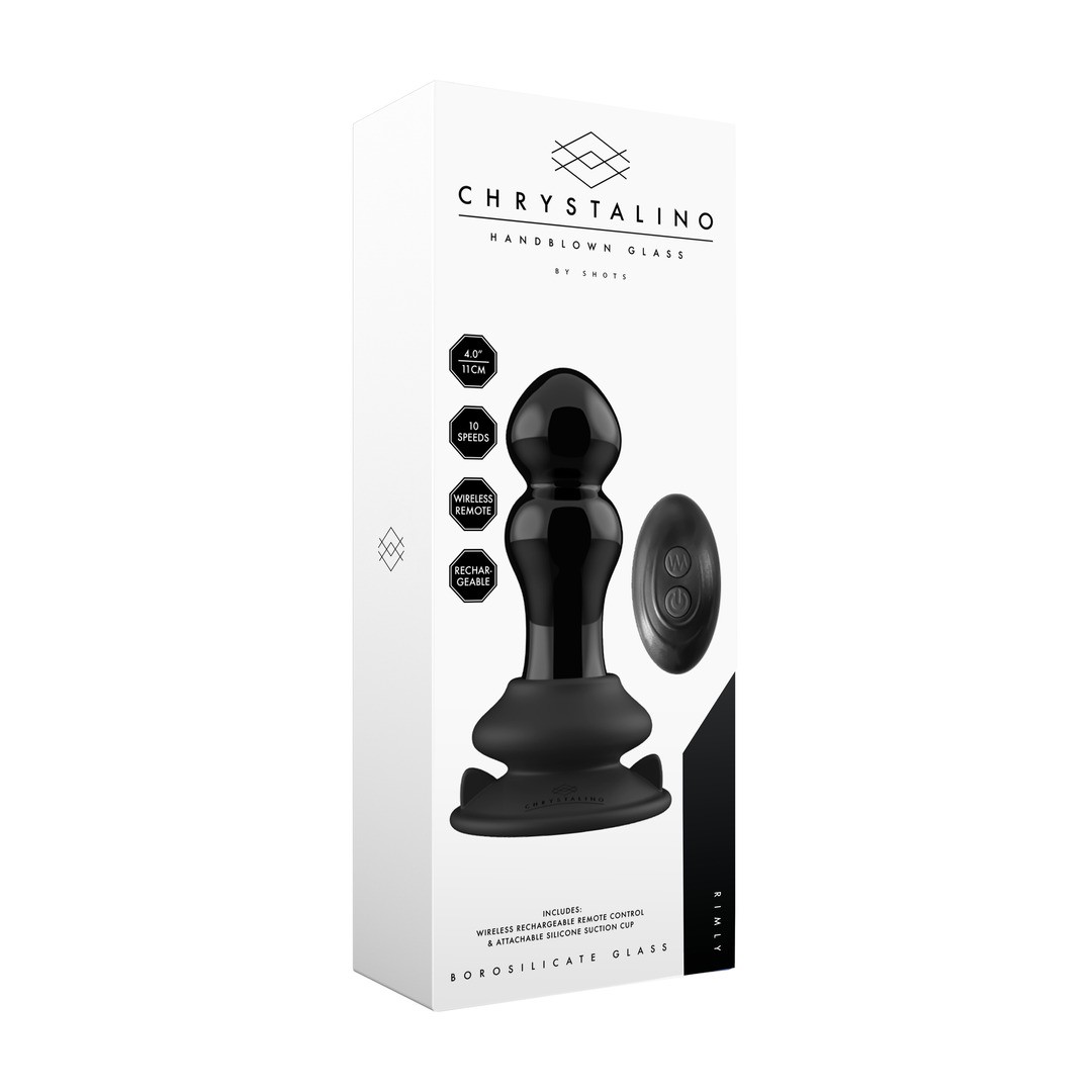 Plug anal Chrystalino de vidrio borosilicato con 10 velocidades, base de silicona con ventosa, mando a distancia inalámbrico y función de juego de temperatura para un placer seguro y personalizado.