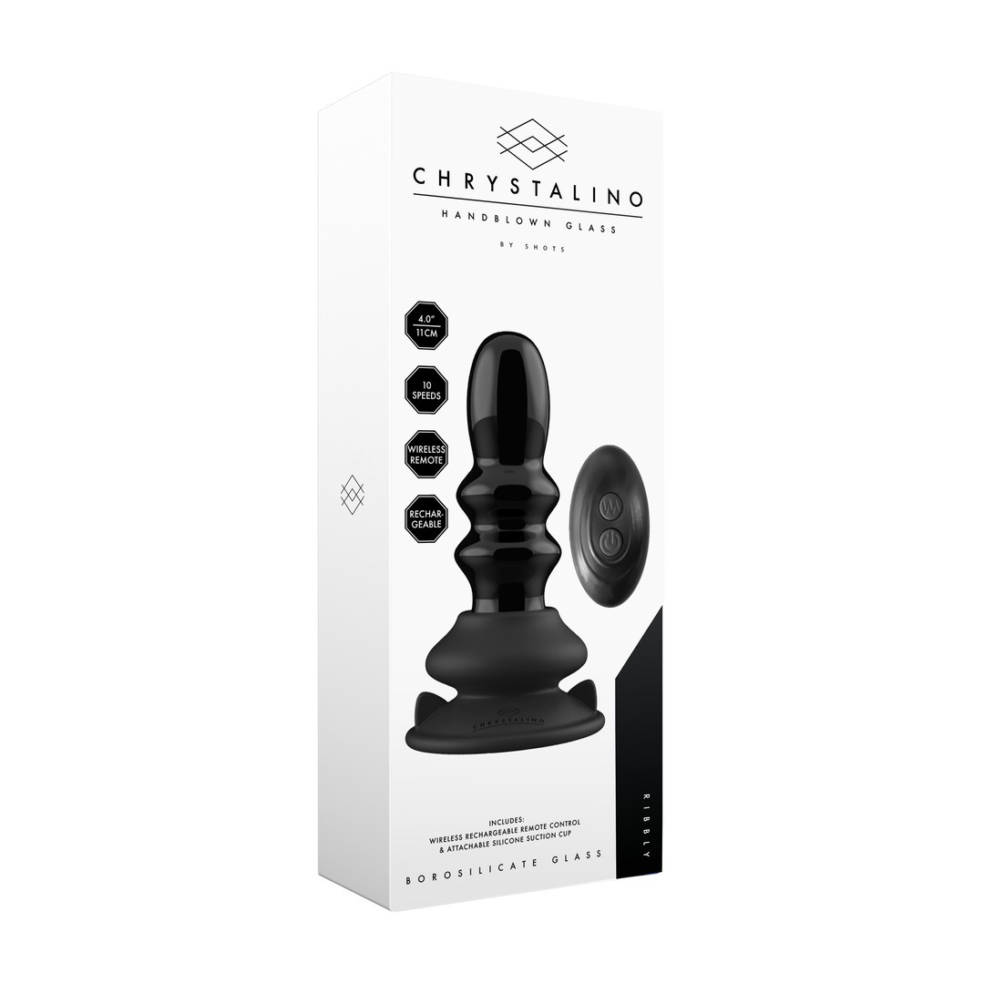 Plug anal en verre Chrystalino avec 10 modes de vibration, base à ventouse et télécommande sans fil.