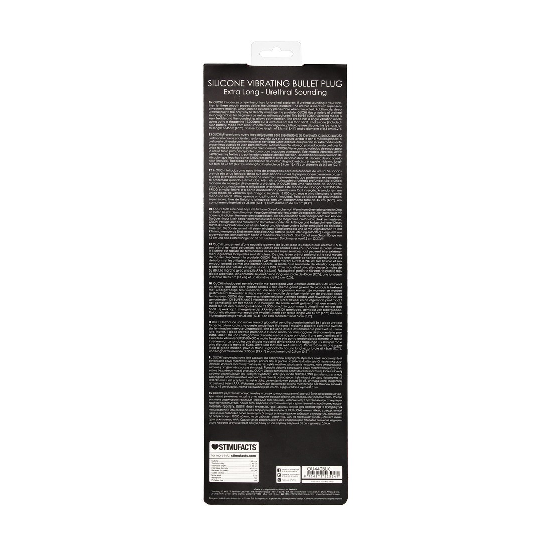 Ouch! ofrece una variedad de sondas uretrales ideales tanto para principiantes como para usuarios experimentados. Este modelo vibratorio extralargo es muy flexible y tiene una punta redondeada que facilita la inserción. Cuenta con un modo de vibración único que alcanza la impresionante velocidad de 12 000 rpm, manteniéndose ultrasilencioso con menos de 50 dB.