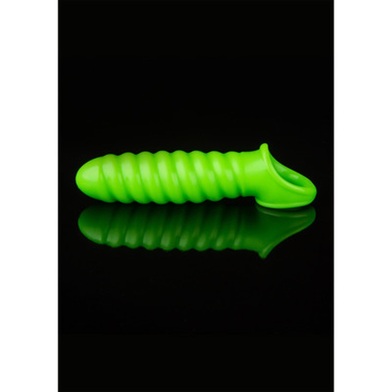 Funda para el pene Ouch! Glow in the Dark gruesa, con sujeción segura y detalles fluorescentes que brillan en la oscuridad.