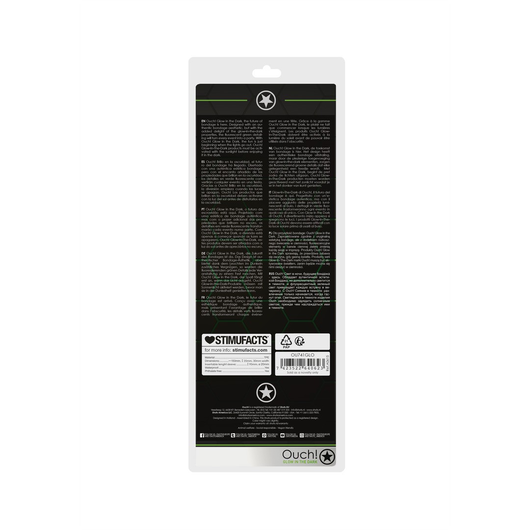 Ouch! Glow in the Dark: el futuro del bondage ha llegado. Diseñado con una estética auténtica de bondage y con el placer adicional de brillar en la oscuridad, los detalles fluorescentes en verde convertirán cualquier momento en una experiencia inolvidable.