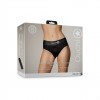 TANGA STRAP-ON HIGH-CUT CON VIBRACIÓN NEGRO OUCH!
