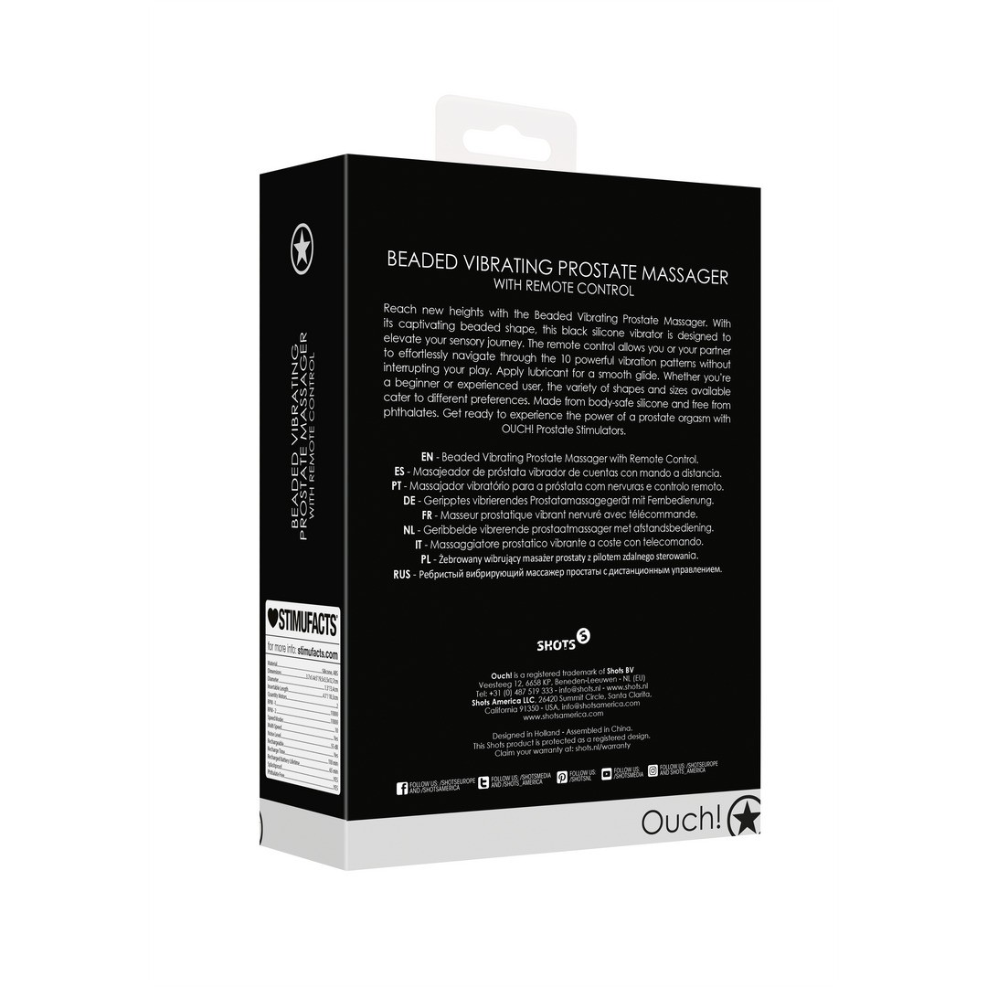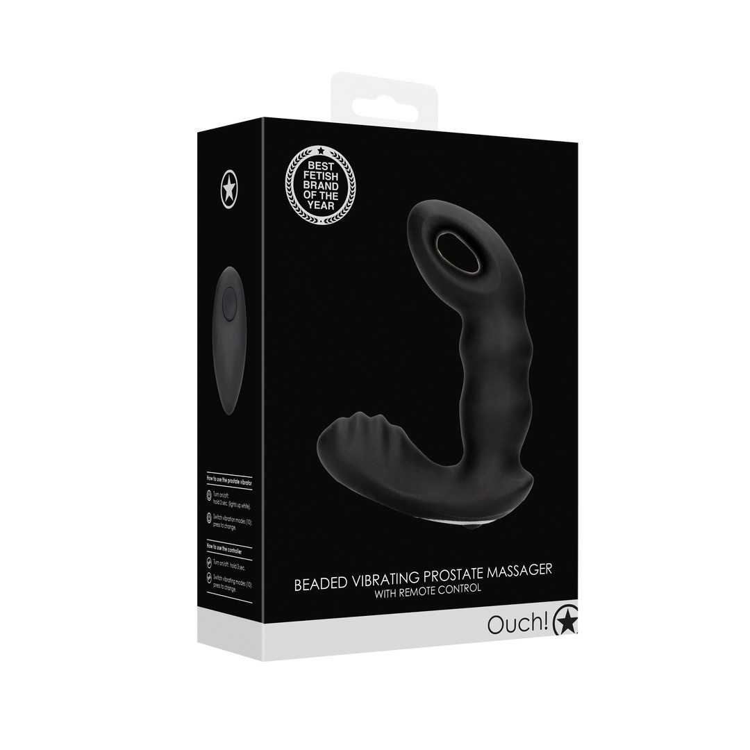 ESTIMULADOR DE PRÓSTATA CON VIBRACIÓN Y MANDO BEADED BLACK OUCH!
