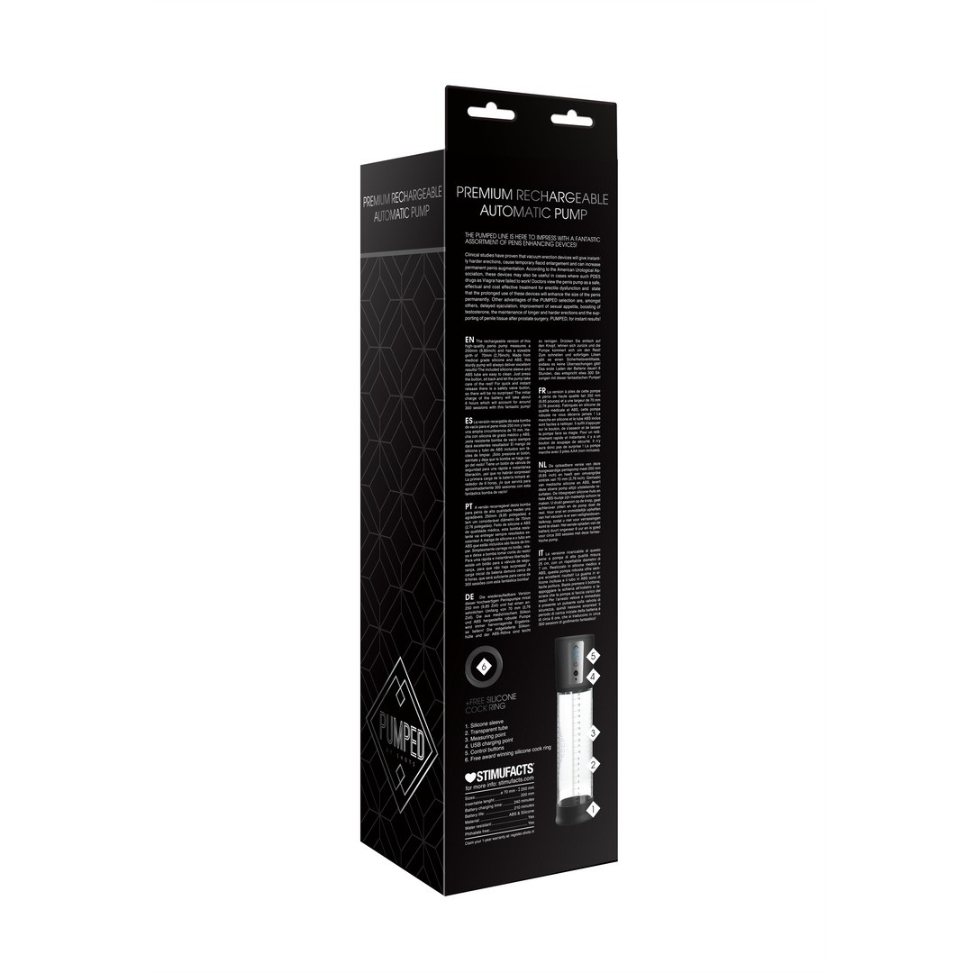 La versión recargable de esta bomba para el pene de alta calidad mide 25 cm de largo y tiene una circunferencia de 7 cm. Fabricada en silicona y ABS de calidad médica, es una bomba robusta que siempre ofrece excelentes resultados.
