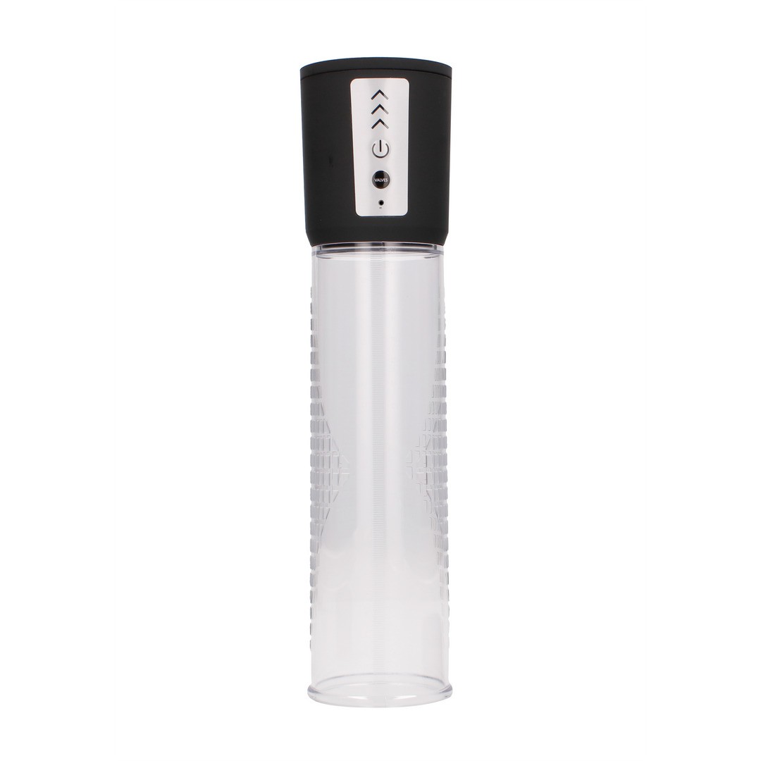 Bomba para el pene recargable con pantalla LED, válvula de seguridad y hasta 300 sesiones de potencia garantizada.