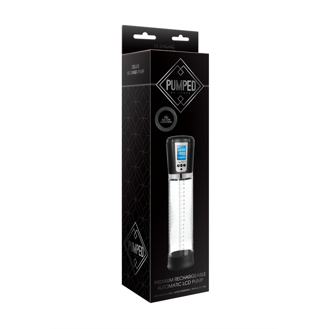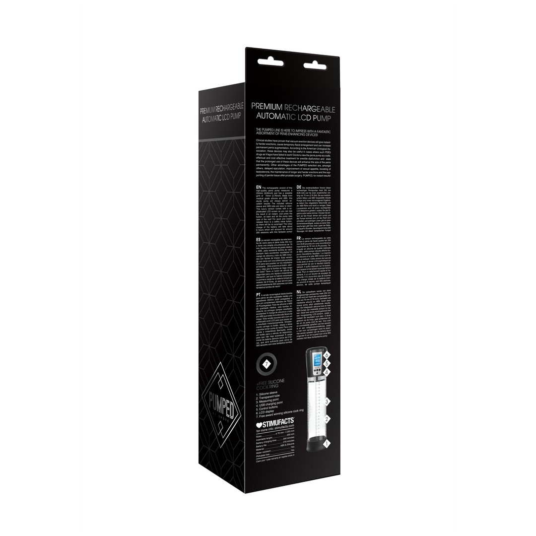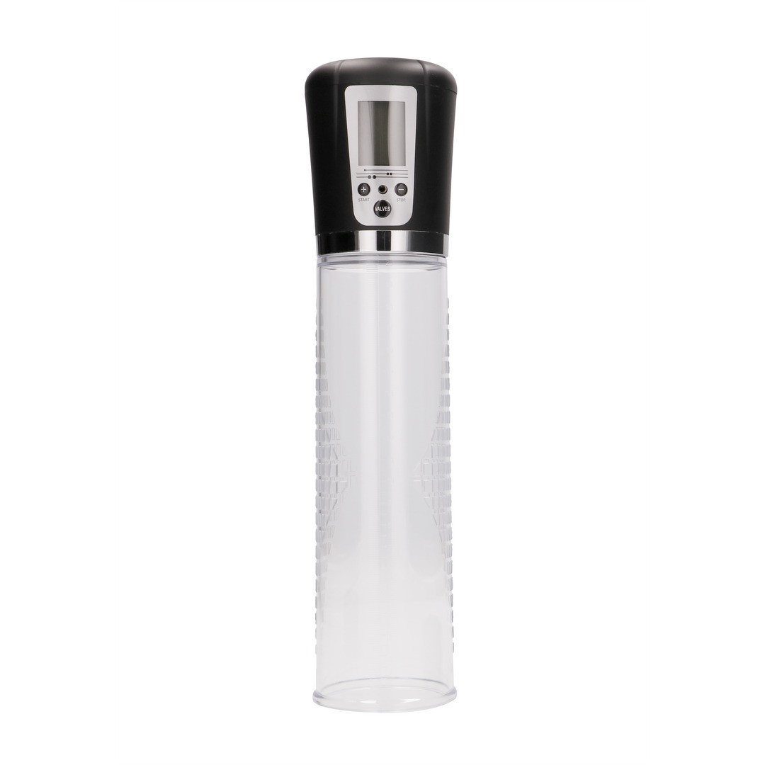 Bomba para el pene recargable con pantalla LED, válvula de seguridad y hasta 300 sesiones de potencia garantizada.