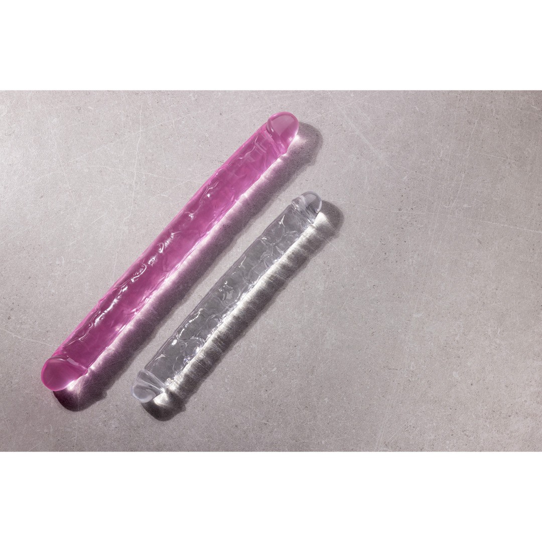 El 18 Crystal Jellies Double Dong de Doc Johnson es una variante suave y flexible del dildo original que inició esta línea. Este dildo de dos extremos presenta el grosor tradicional y la textura con venas tan apreciadas, además de un eje flexible y opciones de colores vibrantes.