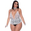 De la colección Dress Up de Magic Silk, este disfraz incluye un body de encaje con escote en V profundo y espalda descubierta, tirantes ajustables con deslizadores plateados en los hombros, cuello de encaje con lazo de satén negro y puños de encaje. Proporciona un ajuste cómodo y está fabricado con materiales y tejidos de alta calidad que realzan las curvas del cuerpo.