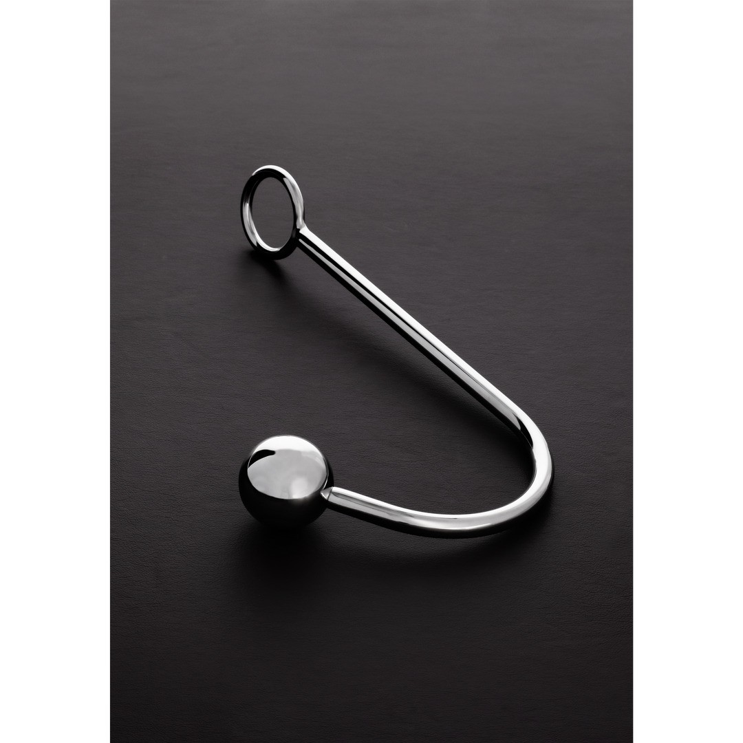 Gancho anal de acero inoxidable, 26,6 cm, con bola de 4 cm para una estimulación cómoda y segura.