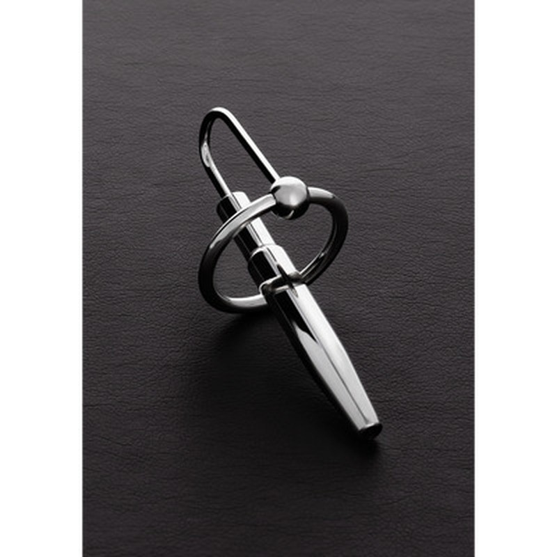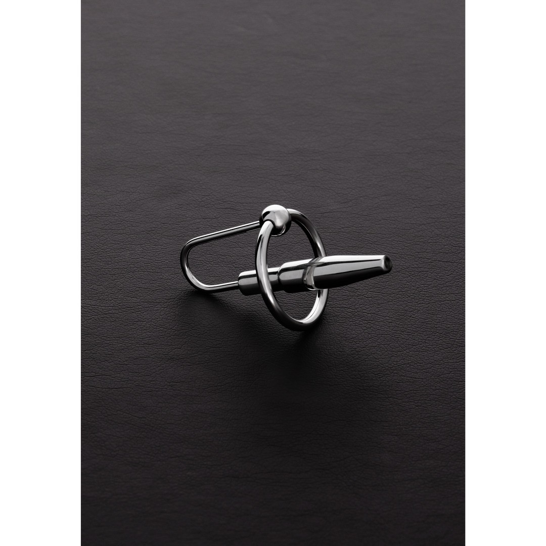 Plug de uretra ergonómico de acero inoxidable con anillo móvil, diseñado para proporcionar una presión sensual en el glande. La bola que sujeta el anillo estimula eficazmente la zona del frenillo y el punto G de la pareja durante la penetración. Tiene una longitud insertable de 6 cm, el diámetro interior del anillo es de 2,5 cm y el diámetro del pene es de 0,8 cm. Fácil de limpiar, este juguete de la gama Shots Steel ofrece comodidad y un gran placer.