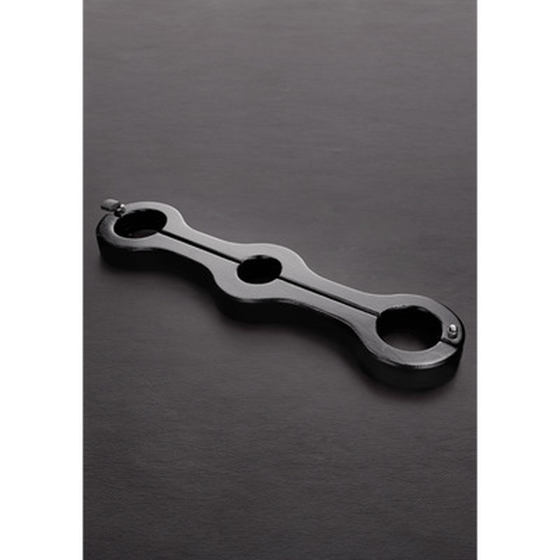 Picota genital femdom de madera, diseñada para sujetar firmemente las manos a los genitales masculinos (pene y escroto). Su diseño exclusivo de Lederhalt presenta una conexión estriada y un sistema de fijación con un solo pasador, lo que garantiza una inmovilización total y una intensa dosis de placer y sumisión.
