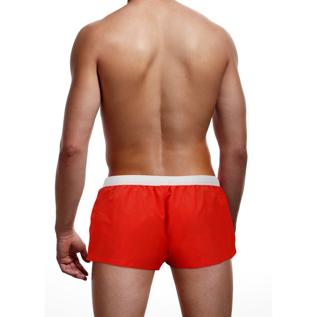 Pantalón de baño rojo Prowler de poliéster, con cintura elástica y corte ajustado que irradia confianza y estilo.