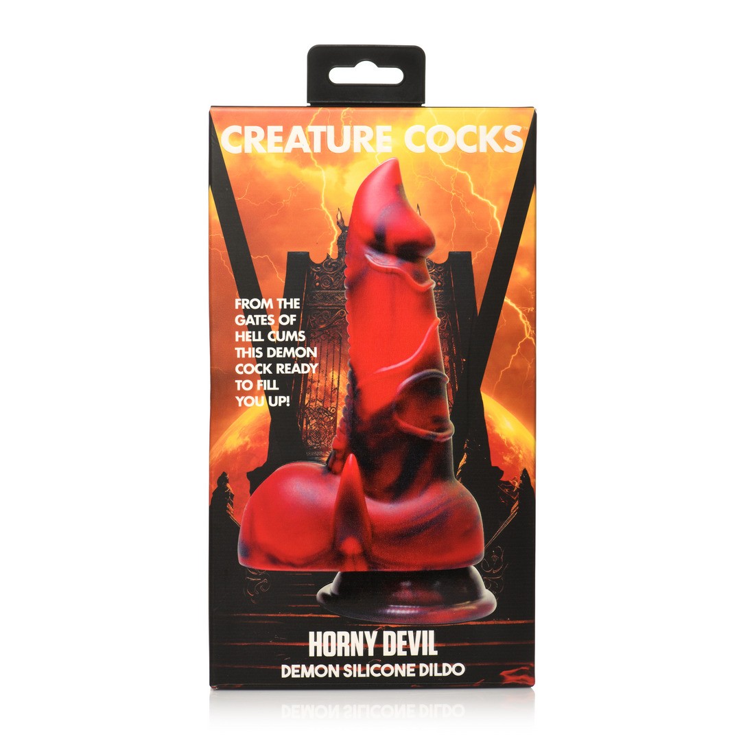Estás listo para ser poseído por uno de los demonios del inframundo? Este dildo demoníaco rojo y negro tiene una forma aterradora, digna de otro reino. La punta cónica facilita la inserción, pero luego hay que lidiar con el grueso mango, las venas salientes y un escudo lateral con un escalón texturizado.