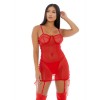 El conjunto de lencería de dos piezas, picardía con tanga Ring It On presenta tejido transparente, copas estructuradas con aros en W sin forro, cordón dorado con anillas laterales, ligas y braguitas a juego. Este producto se suministra en una bolsa de plástico.