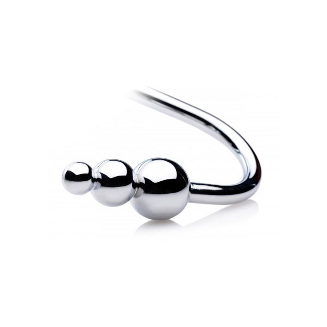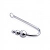 Gancho anal con 3 bolas y anillo de sujeción, ideal para juegos BDSM intensos.