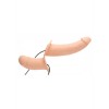 Strap-on doble con vibración y textura realista, ideal para el placer simultáneo entre parejas o parejas curiosas.