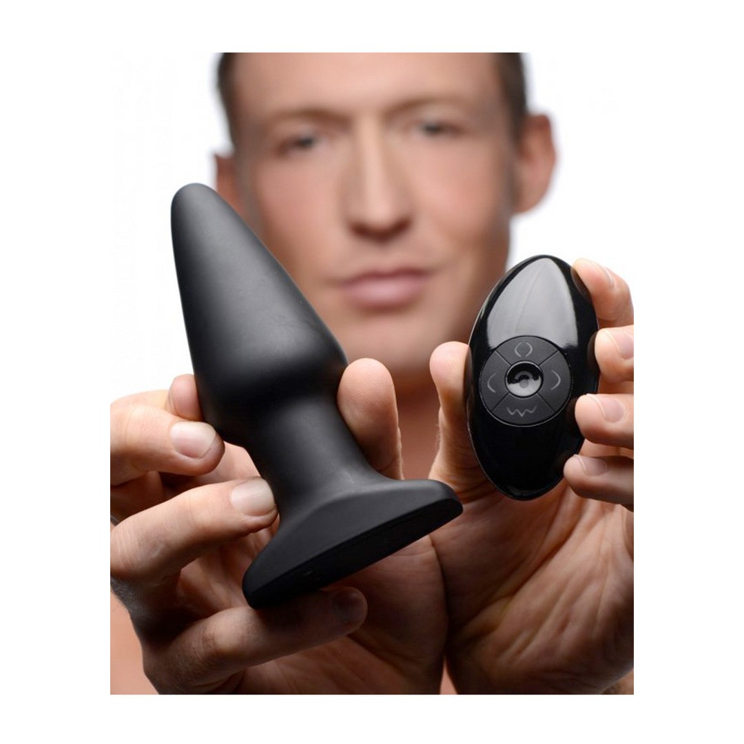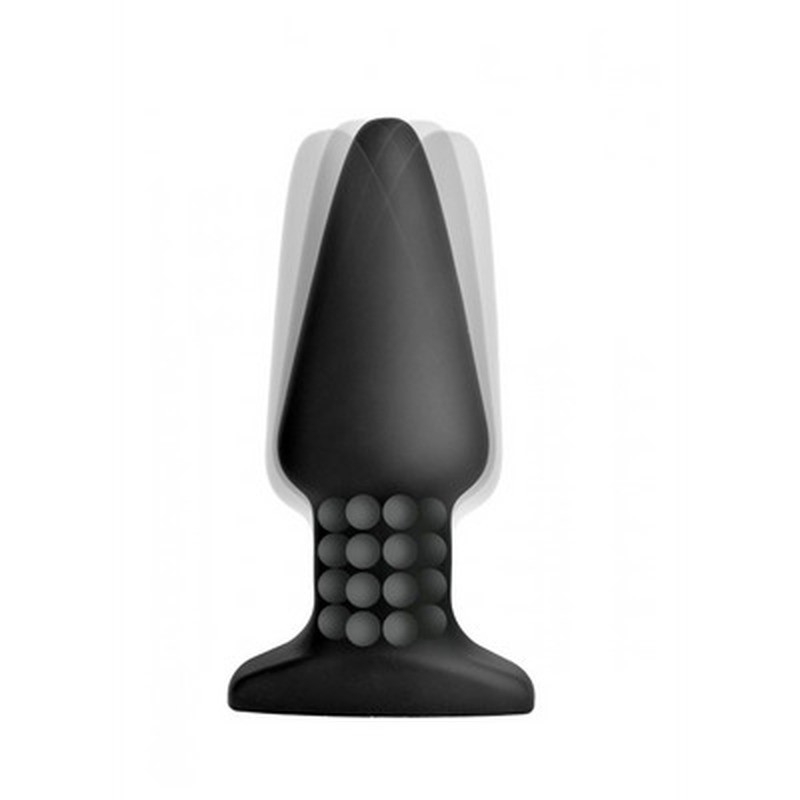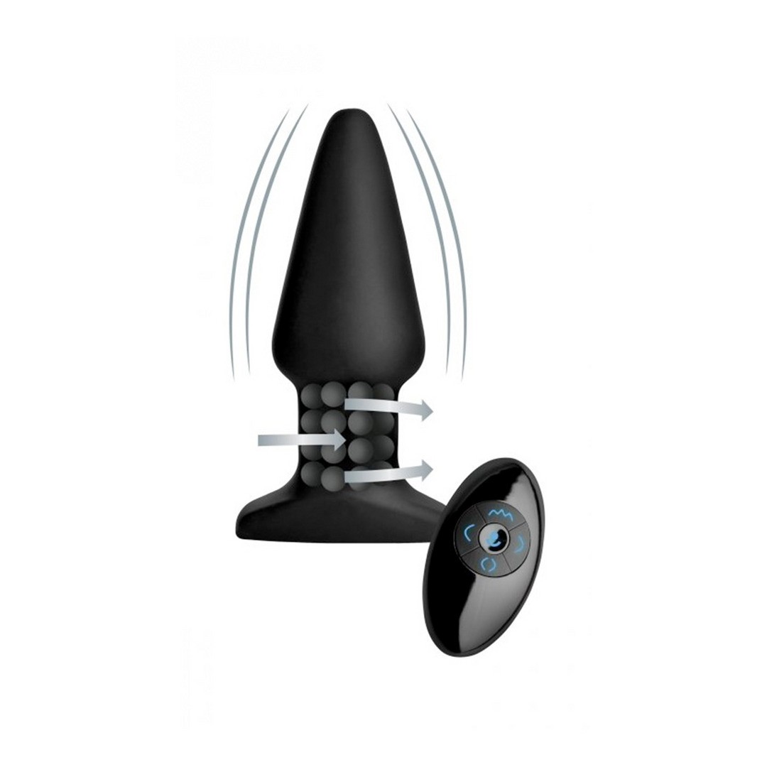 Plug anal con punta cónica, mando, perlas giratorias y vibración para una estimulación intensa y un placer anal elevado.