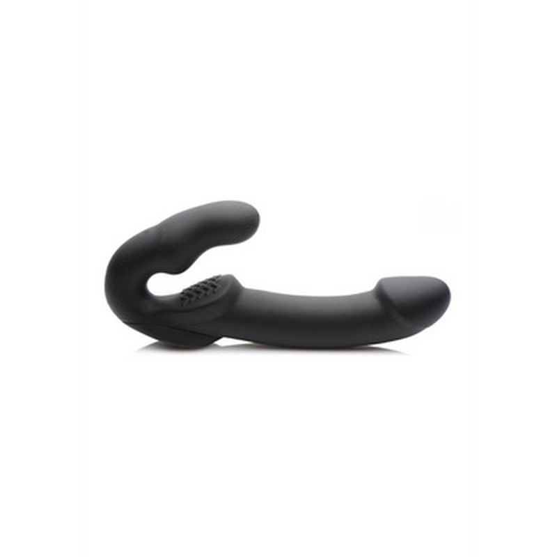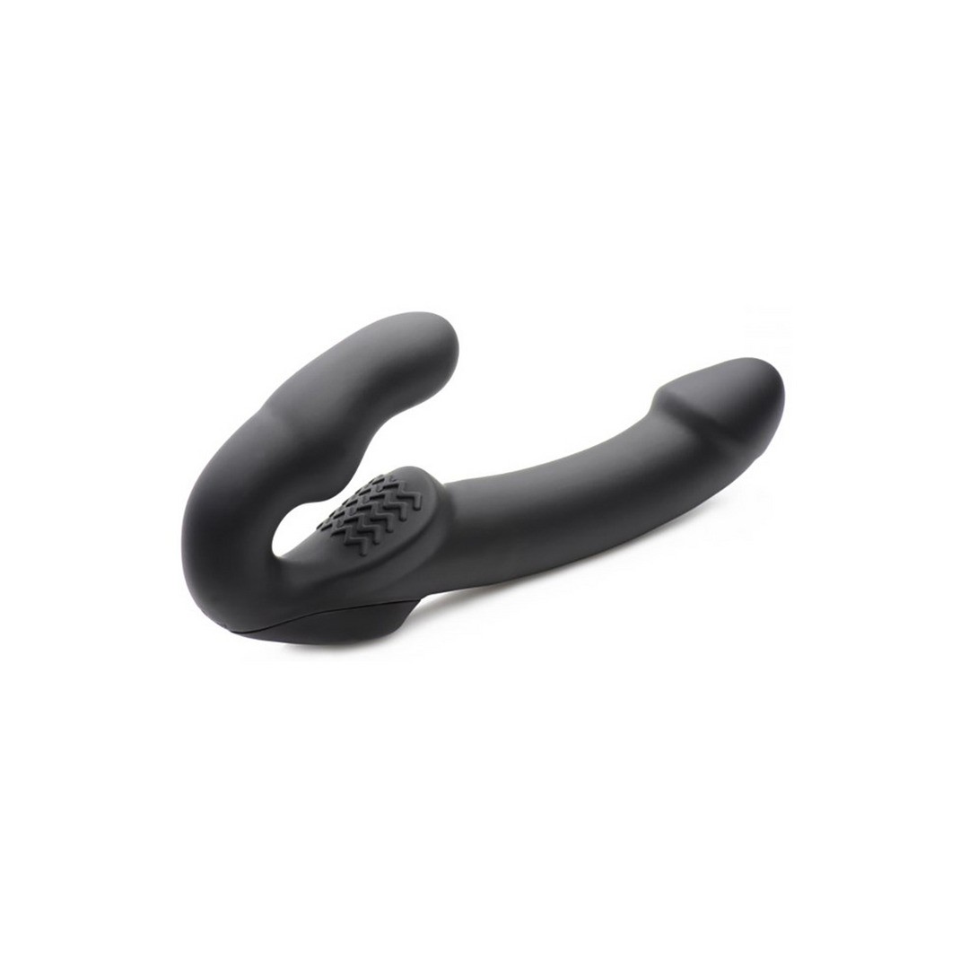 Strap-on sin arnés con doble vibración y control independiente para un placer personalizado. Diseño ergonómico en silicona de grado médico, seguro, potente e impermeable.