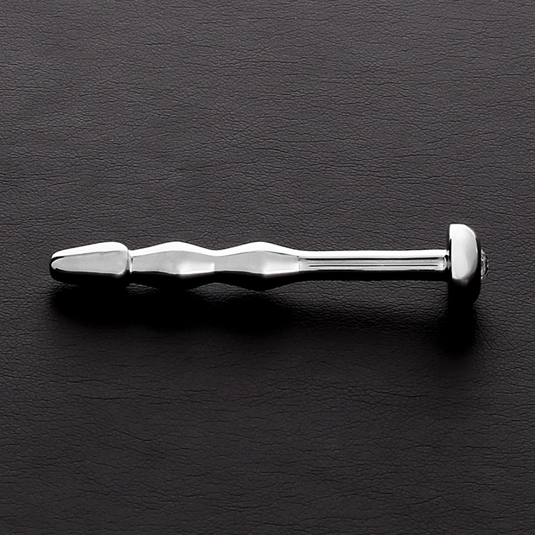 Elegante sonda de uretra en acero inoxidable con tres suaves ondulaciones para una estimulación intensa. Mide unos 75 mm (65 mm insertables) y tiene 9 mm de diámetro. La base está adornada con una joya de colores para darle un toque de lujo.