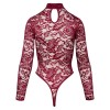 Body de manga larga de Cottelli LINGERIE con un pequeño cuello alto. Confeccionado íntegramente en fino encaje ornamental en un sofisticado color rojo burdeos. Suave y elástico en todo el cuerpo para un alto nivel de comodidad. El estilo tanga con cortes extra altos en las piernas muestra el trasero y las piernas a la perfección. Con cierre de presión en la entrepierna, práctico y seductor al mismo tiempo.