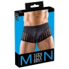 Elegantes y provocativos pantalones cortos con una práctica cremallera acolchada en la parte delantera. El modelo de Svenjoyment está fabricado en suave microfibra negra y cuenta con inserciones de rayas transparentes en la parte delantera y los laterales. Altamente elásticos, garantizan un ajuste cómodo y realzan la silueta.