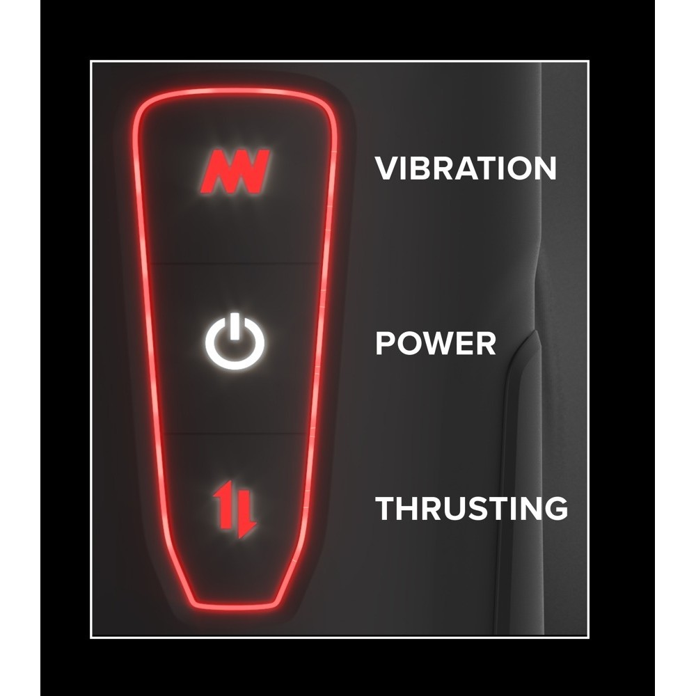 La vibración y los masajes de empuje tienen 10 modos cada uno y se controlan fácilmente pulsando los botones del panel de control LED. La vibración y los masajes pueden controlarse por separado. La funda extremadamente suave tiene puntos en el interior que masajean intensamente el pene. La funda tiene un diseño neutro y se puede extraer para limpiarla.