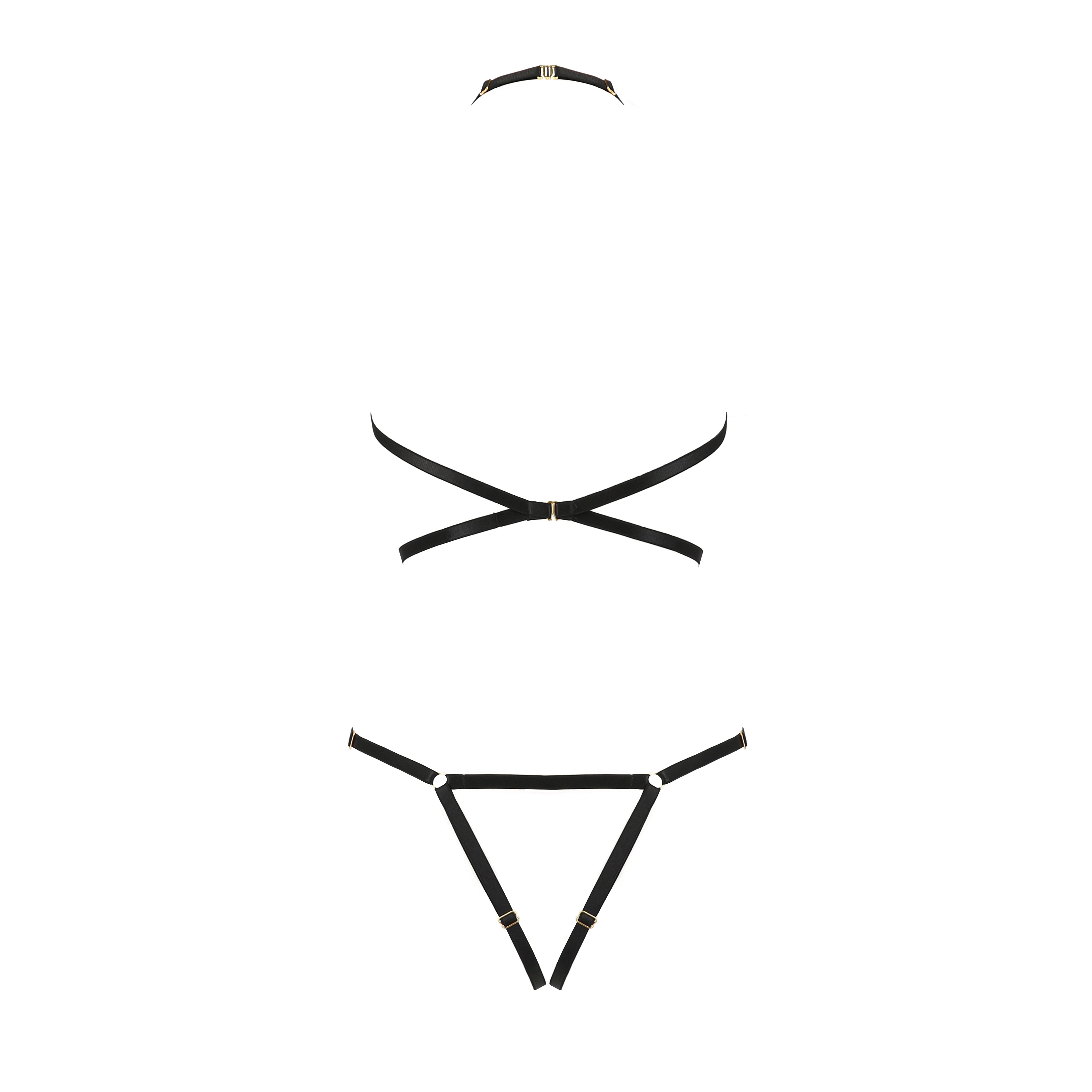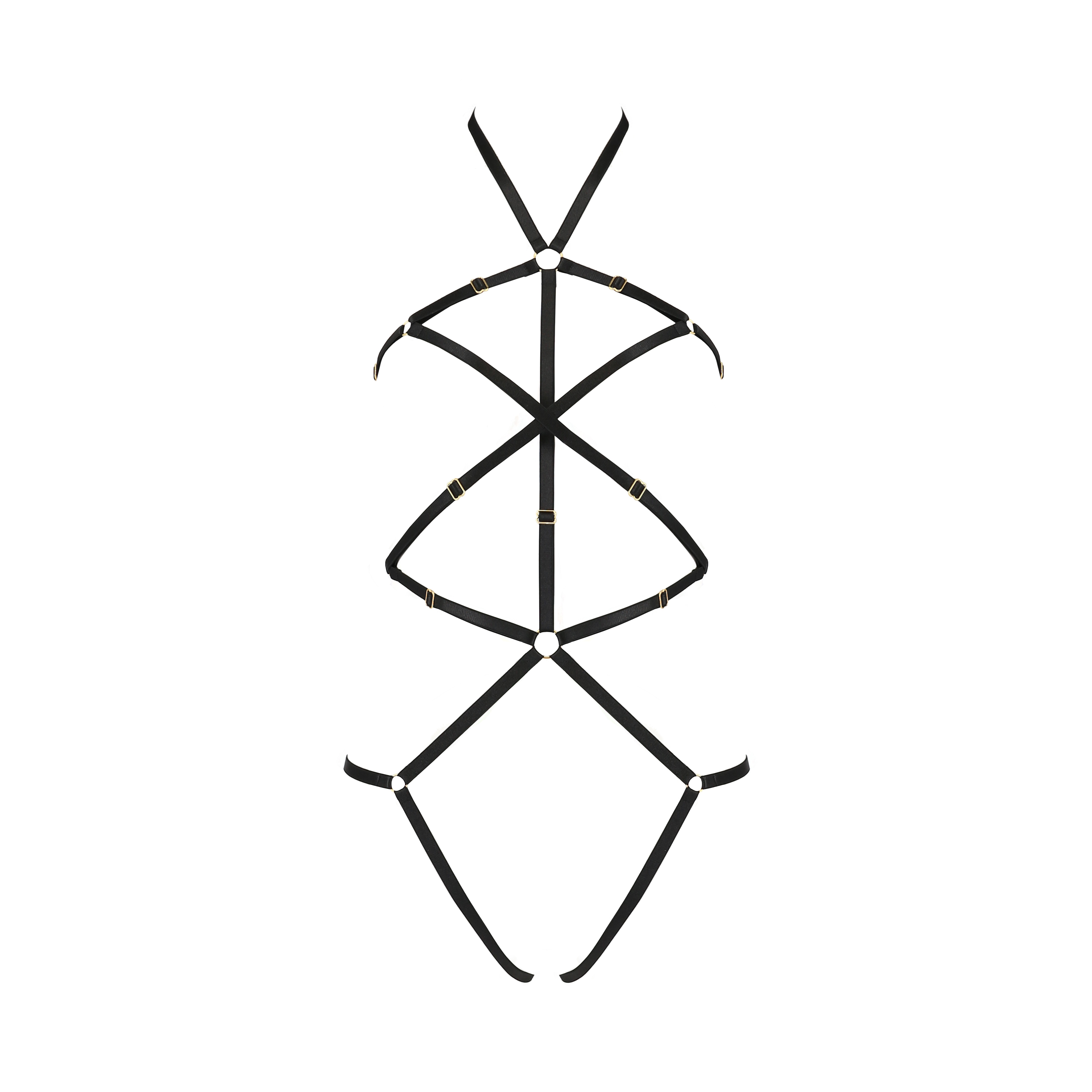 El body Ivena destaca por su original confección, con sensuales tirantes que envuelven el cuerpo, acentuando el estilo personal y funcionando perfectamente como pieza independiente.