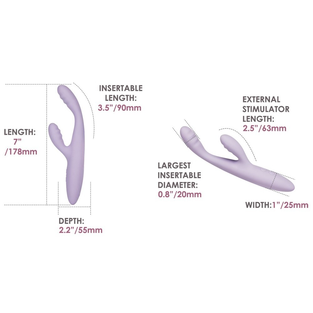 El vibrador rabbit Cici 2 de SVAKOM, ligero y fácil de sujetar, proporciona placer tanto vaginal como clitoriano. El eje curvo y estrecho estimula eficazmente el punto G con su cabeza estriada, ofreciendo una doble estimulación ideal para orgasmos intensos y combinados. Se puede utilizar en la bañera o en la ducha, ya que es totalmente resistente al agua. Las vibraciones, silenciosas pero potentes, se controlan fácilmente mediante un botón. El ajuste personalizado de las vibraciones, los juegos a distancia y la interacción con la pareja son posibles gracias a la aplicación SVAKOM.