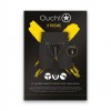 Infografía Pu Leather female chastity belt with leg restraint (OU1030BLK) en inglés.