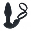 Estimulador de próstata de doble bola con vibración y rotación, anillo integrado y mando a distancia manos libres.