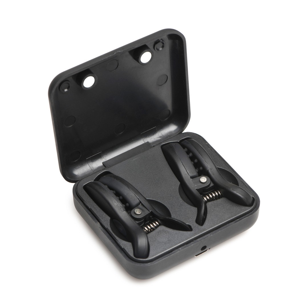 Fabricadas en silicona de alta calidad y segura para el cuerpo, ofrecen un tacto suave y sedoso. Con protuberancias adherentes que garantizan una fijación firme pero delicada en los pezones, son perfectas para quienes buscan una estimulación extra. Se recargan de forma práctica en la elegante caja Master Series, discreta y fácil de transportar, similar a una caja de AirPods, que mantiene las pinzas limpias y siempre listas.