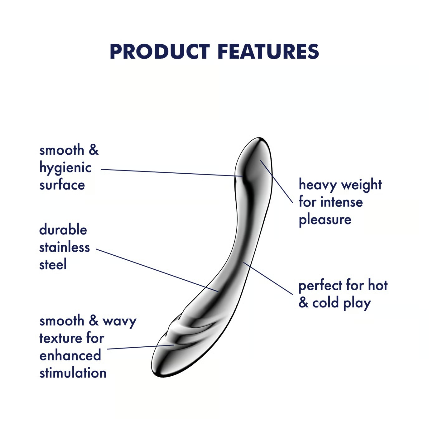 El diseño de acero inoxidable pesado amplifica cada movimiento, proporcionándote más intensidad con menos esfuerzo. Deja que la gravedad haga el trabajo, ya que la sensación sólida y pesada mejora la penetración y te lleva a un éxtasis más profundo con un movimiento mínimo. Además, la superficie de acero inoxidable ultrasuave no solo es lujosamente elegante, sino que también es increíblemente fácil de limpiar, no porosa y totalmente segura para el cuerpo.